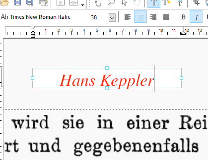 In diesem Beispiel möchten wir den Namen Wilhelm Korte auf der gescannten Seite durch den neuen Namen Hans Keppler ersetzen.