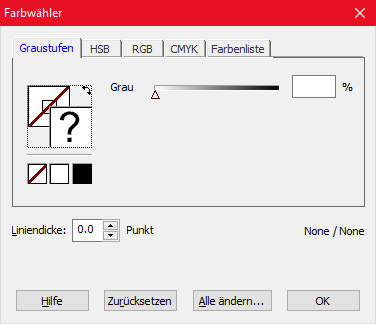 Werden mehrere Objekte mit unterschiedlichen Farben selektiert, zeigen Füll- und Umrandungsfarbe wie unten dargestellt '??' an: