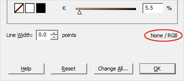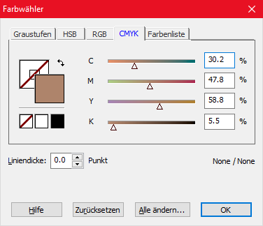 Der Originalfarbraum der selektierten Objekte wird Ihnen im Dialogfenster unten rechts angezeigt: