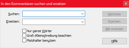 - Klicken Sie auf Nächstes, um von der aktuellen Stelle aus das nächste Vorkommen des gesuchten Textes in einem Kommentar zu finden.