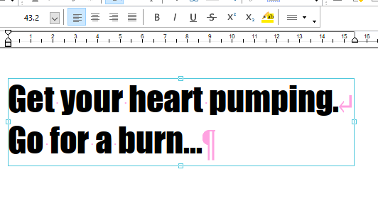 2. Klicken Sie auf einen Textblock, um die Bearbeitung zu starten. Die Symbolleiste Textformat und das Lineal werden aktiviert, und der zu bearbeitende Textblock wird mit einer Umrandung hervorgehoben.