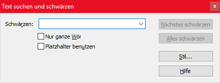 in der Symbolleiste (Ansicht > Symbolleisten > Schwärzen). - Geben Sie den Text ein, den Sie schwärzen möchten: