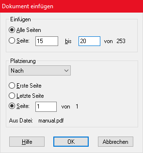 Seiten aus anderen Dokumenten können in das aktuelle PDF eingefügt werden.