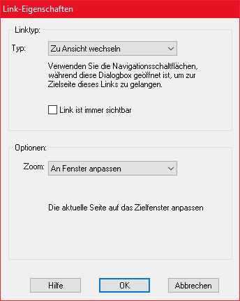 8. An der richtigen Stelle angekommen, klicken Sie wieder in das Dialogfenster und wählen Sie bei Zoom die Vergrößerungsstufe für das Dokument nach dem Klick auf den Hyperlink aus.