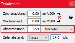 Hier können Sie exakte Werte für den Absatzabstand in Maßeinheiten Ihrer Wahl festzulegen.