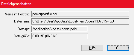 in der Symbolleiste der Portfolioleiste. - Wenn es sich bei dem Dokument um ein PDF handelt, wird das Dialogfenster Dokumenteigenschaften angezeigt. Wenn es sich nicht um ein PDF handelt, wird ein kleiner Informationsdialog mit grundlegenden Informationen über die Datei angezeigt.