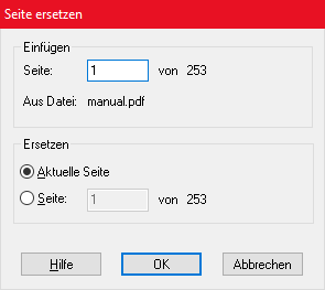 FlexiPDF kann eine Seite des aktuellen PDFs durch eine Seite aus einem anderen PDF-Dokument ersetzen.