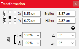 Mit dem Fenster Transformation können Sie Objekte bewegen, skalieren, drehen und neigen.