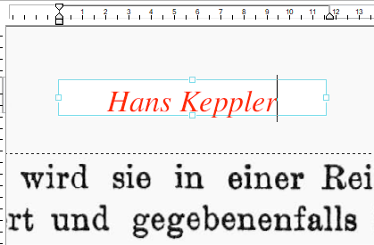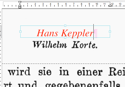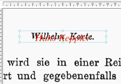 In this example, we would like to cover the name Wilhelm Korte on the page with the new name Hans Keppler.