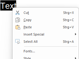 This menu contains different commands depending on the current situation. If, for example, you select some text and then right-click to open the context menu, it offers commands for cutting, copying or formatting that text.