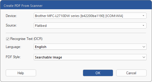 | 4. | To convert words from the scanned document into editable or searchable text instead of just creating a "photo", make sure that Recognise Text (OCR) is selected. If you are scanning a photo without text, do not enable this option and skip the next steps. |