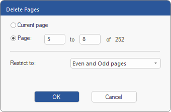| 3. | The option Even and Odd Pages deletes all pages in the range that is entered. You can also restrict the deletion process to Even pages only or Odd pages only. |