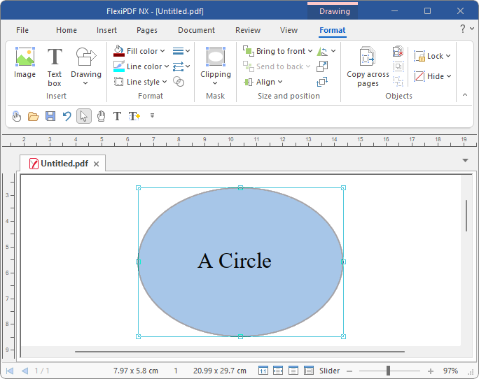 | 4. | To maintain the ratio of height and width when stretching, hold down the Shift key while stretching the objects. In the above case, that would result in a larger circle rather than a large oval. |