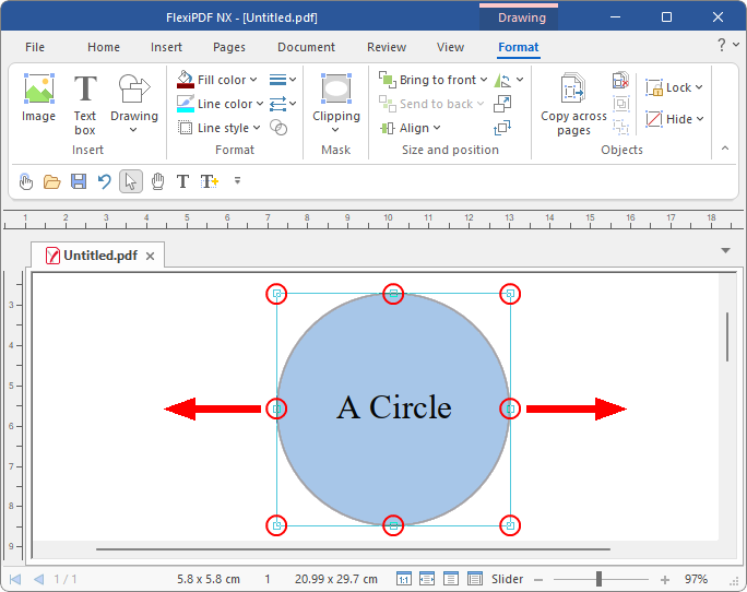 | 2. | Drag one of the eight handles to stretch (or compress) the objects. |