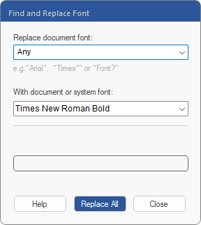 | Any text in the entire document that was written in the desired font will now be converted to the new font and the relevant paragraphs will be reflowed if necessary. |