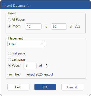 | 3. | Select the pages that you want to insert: All Pages or a page range. |