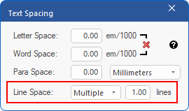 Multiple Use Multiple mode to set spaces such as "2.5 lines". The line space is thus set to 2.5 times the line height. In Multiple mode, selecting a line space with a value of 1 or 1.5 or 2 has the same effect as using the above buttons on the ribbon tab Home | group Text box for single, 1.5x or 2x line spacing. |
