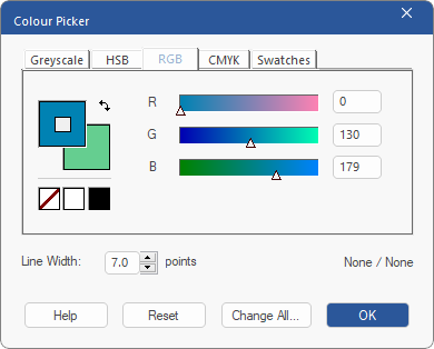 | 3. | In addition to the fill and outline colors, the dialog box Color Picker also contains an input field for the Line Width further below. (In this case, it does not matter whether the outline box or the fill box is in the foreground.) |