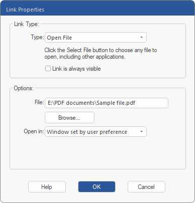 | 4. | Change the Link Type to Open File. |
