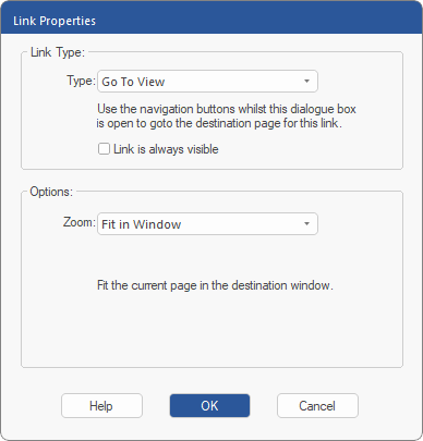 | 8. | Once at your desired location, click again in the dialog box. For Zoom, select the document's zoom level which should be set after clicking on the hyperlink. |
