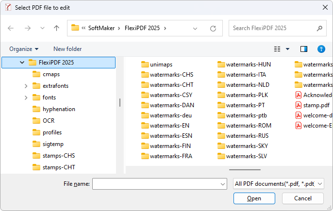 To do so, you could simply type in the name of the file you want to open manually. However, the dropdown list with the files is more convenient because all files are listed here in the current folder and can be easily selected.