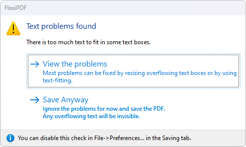 You may see a warning when you save a PDF: