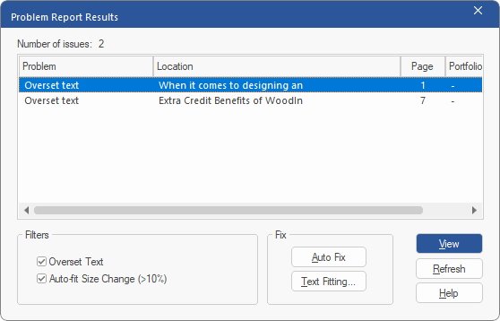 | Auto-fit Size Change >10%: If the text size was automatically adjusted by more than 10 percent to enable the text to fit in the box. |