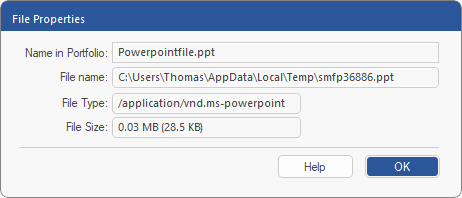 ▪To display the document properties of the superordinate portfolio PDF (i.e. the properties of the "container"), choose the command File | Properties.