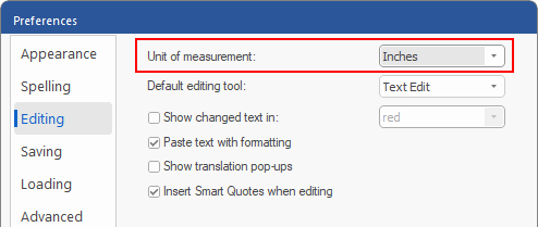 You can change the units of measurement of the ruler. The dialog box Options provides centimeters, millimeters, inches, points and picas. Changing the unit of measurement affects all dialog boxes and setting options that contain units of measurement in any form.