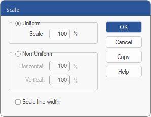 | Scale line width – If this option is selected, the width of the outline around an object is also affected by the scaling. This has no effect when scaling images. |